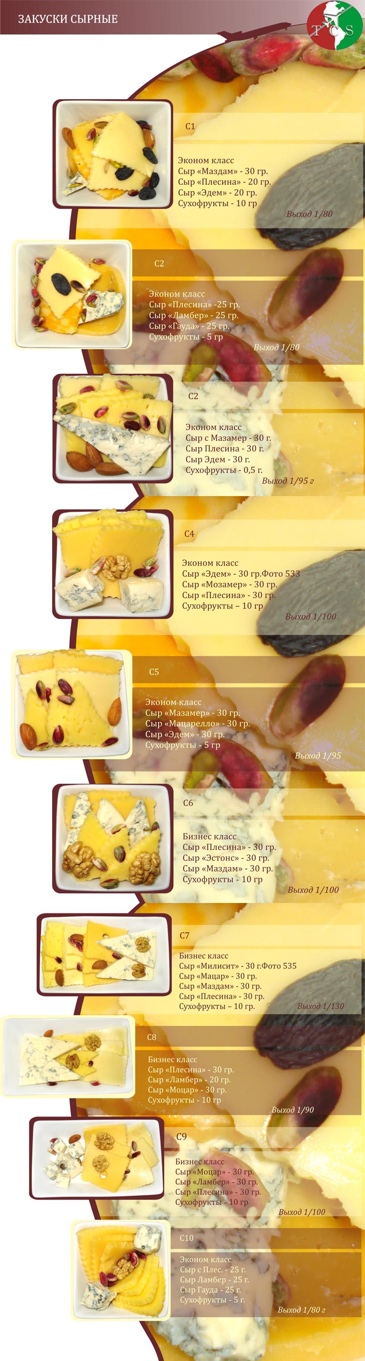 Ассортимент холодного и горячего питания для авиакомпаний